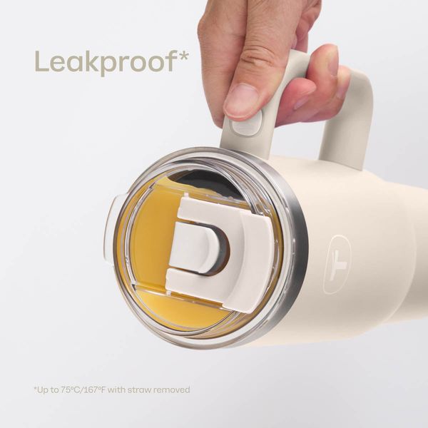 Leakproof*: The flip-top locking lid keeps your beverage where it should be: in your cup.Straw or spout: With both a straw opening and a spout, you can drink any which way you like.Hot or cold drinks: Our double-walled design doubles down on keeping your drink hot (37 oz (1.1L) size – up to 4 hours), cold (37 oz (1.1L) size – up to 17 hours or iced (37 oz (1.1L) size – up to 48 hours)**.Ergonomic handle: Soft and sturdy? The handle on our 37-oz/1.1L big T is solid yet comfortable thanks to its soft-touch material.Protective finish: With a powder coating that prevents scratches, big T will look camera-ready long after you buy.Cup holder compatible: With a smaller base that fits seamlessly in most cup holders, big T is the ultimate car co-pilot.